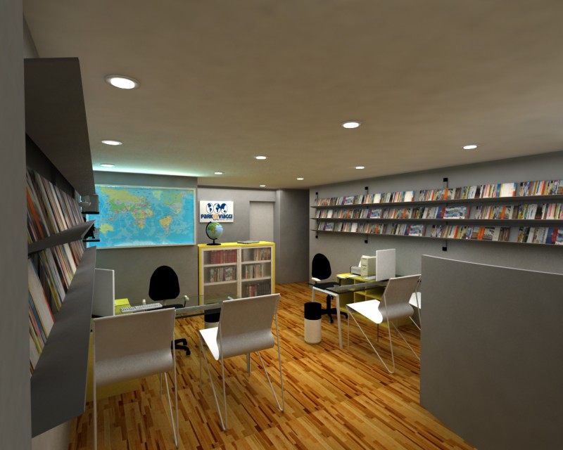 Proposta di rivisitazione dell’arredo di una piccola agenzia di viaggi, situata al piano terra di un palazzo storico a Venezia. La calle su cui affaccia il negozio è molto stretta e la vetrina, unica fonte di luce naturale, molto piccola. Il progetto prevede la disposizione di due postazioni di lavoro, e della messa in opera di espositori di cataloghi. Interessante il progetto della luce artificiale.