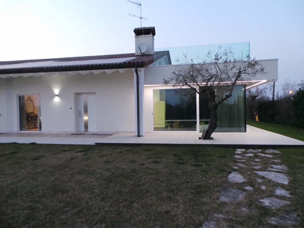 Nella campagna nel trevigiano, è stato fatto un’ampliamento di una vecchia casa per due famiglie, per dare maggior respiro alla zona giorno, e per inserire una palestra e una zona relax. Il legno è stato usato sia come materiale strutturale che come elemento di finutura delle superifici esterne, percorsi al piano terra e solarium sul tetto.