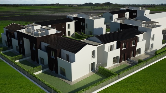 Il complesso per 20 residenze sorge su di un terreno ai margini della città di Dolo, sulla Riviera del Brenta. Il piccolo insediamento è stato pensato come una serie di unità con accesso indipendente e proprietà cielo-terra. Le abitazioni accoppiate a due a due sono disposte a corte e sono dotate di giardino privato e garage.