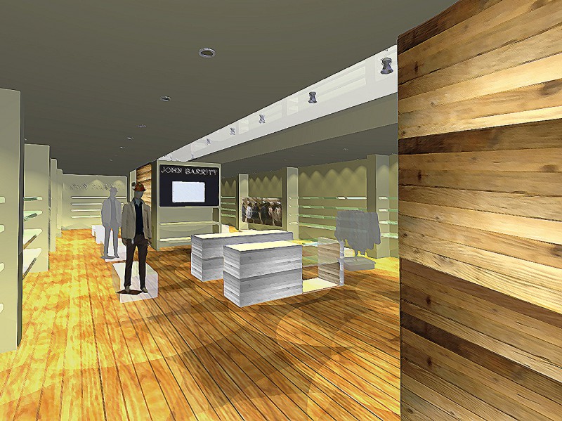 Questa idea per una catena di negozi doveva soddisfare l’esigenza del commitente di avere un abiente caldo e molto ben illuminato. La scelta del legno come materiale predominante era obbligata. La disposizione interna è stata pensata in modo da ottenere spazi fruibili e molto semplici. La parte centrale del negozio è adibita alle funzioni cassa e camerini, con l’utilizzo di un colore chiaro a soffitto e una luce diffusa. I percorsi laterali sono stati pensati per evidenziare i prodotti in vendita, con illuminazione puntuale e di un colore di fondo più scuro, per attirare l’attenzione del cliente sul capo in vendita. Un area dedicata agli accessori: è stato destinato uno spazio specifico per l’esposizione di cravatte e scarpe con l’utilizzo di specchi e sedute per la prova dei capi.