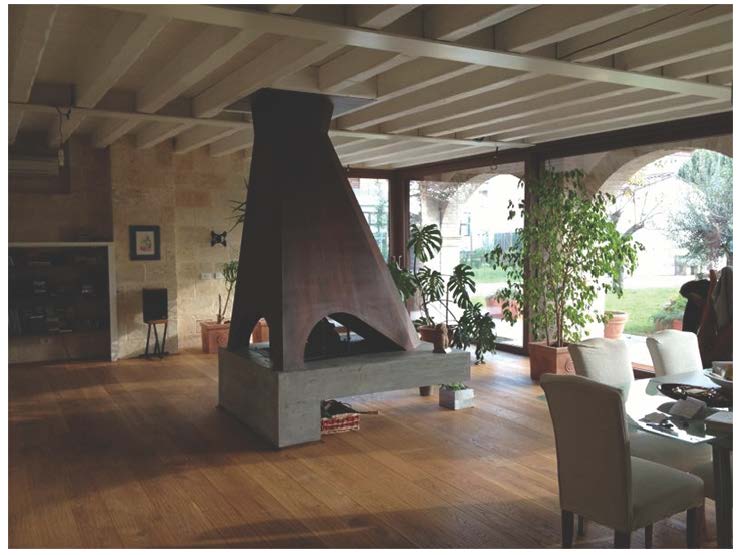 I materiali quali il mattone, la pietra, il ferro ed il legno, siano impiegati come tasselli mancanti di una composizione consumata dal tempo. Il risultato è una collaborazione formale tra edicio esistente e nuovo, una dualità compositiva di colori e materiali che oltre a ridare una funzione, evidenziano sia il carattere rurale che moderno senza prevaricazioni.