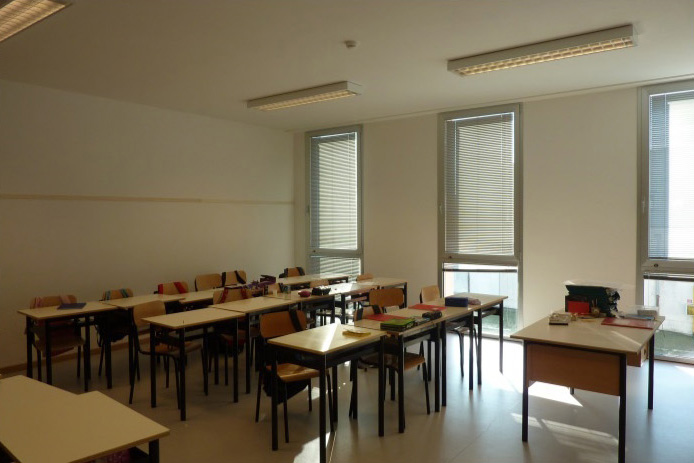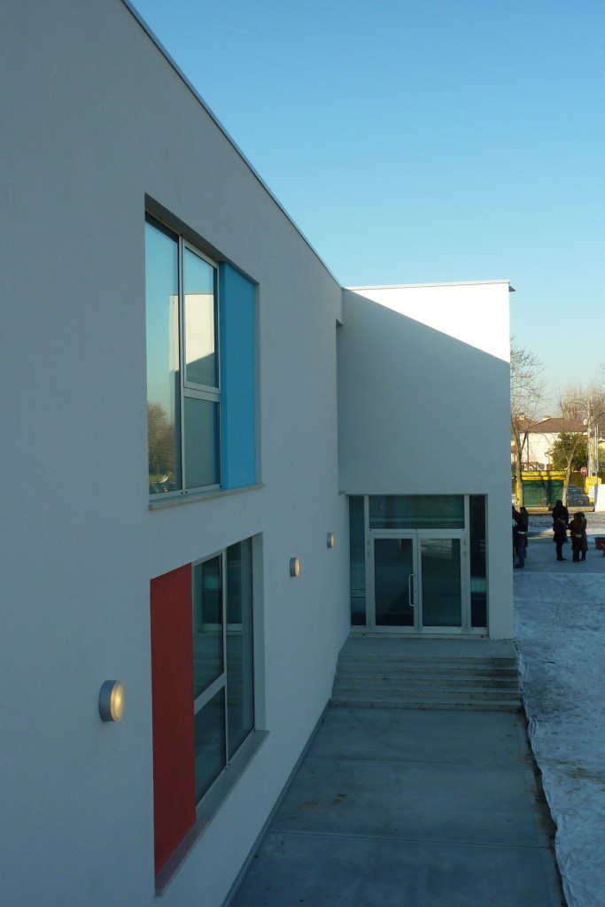 Oggetto del progetto è la realizzazione di un nuovo plesso scolastico per ampliamento della scuola secondaria di primo grado Galileo Galilei, ubicata nel quartiere Montà di Padova. Il nuovo edificio, destinato a scuola elementare, ospiterà circa cento cinquanta alunni suddivisi in sei aule. Secondo i programmi dell’Amministrazione Comunale è previsto, un ulteriore ampliamento per due cicli completi, corrispondenti a circa 250 alunni suddivisi in dieci aule. Si è scelto di seguire l’allineamento con Via della Biscia, assoggettando così l’edificio alla trama edificatoria del quartiere, dove l’unica eccezione è rappresentata dall’orientamento della scuola esistente. Questa scelta permette un miglior rapporto tra edificio e lotto in vista del futuro ampliamento, ponendosi parallelamente ai confini; dal punto di vista compositivo dà luogo ad un impianto più dinamico, nel quale i singoli edifici sono percepiti nella loro individualità e al contempo come parte di un unico insieme. Il nuovo edificio si articolerà attorno a tre spazi: una piazza d’ingresso, un’area gioco per la scuola elementare, un’area dedicata all’attività fisica degli alunni della scuola media.